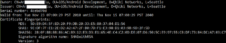 Using rich metadata details and analysis logs from our own NewSky AppRisk Scanner, we observe the following certificate details of the fake app: